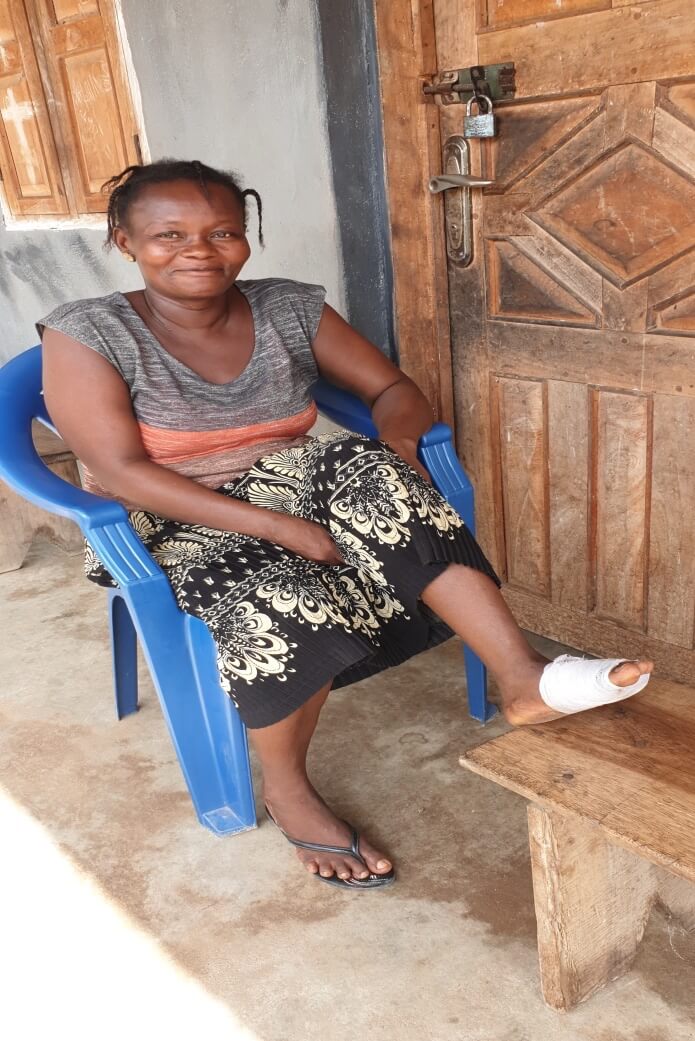 Baindu Gbessay, 43, is among 40 women and men who contribute to the Health Insurance Scheme in Mamboma community. She sells palm oil and also embarks on agricultural activities such as cultivating groundnuts and cassava. About 3 months ago, Baindu was heading to her farm when she stepped on a thorn that led to the right sole of her foot getting swollen. “This accident caused me a lot of pain and made me helpless as I was unable to work and was restless due to the amount of pain I was in.My husband who is into masonry did everything for me. From carrying me from one place to another to helping me bath to cooking and taking care of the kids”, she narrated.